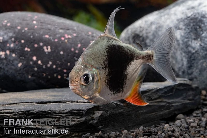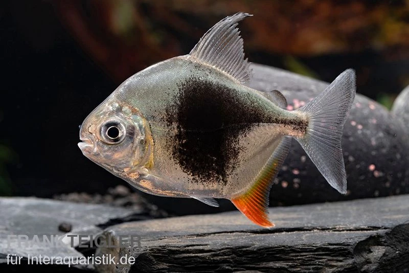 Der Blackberry Silver Dollar hört auf die wissenschaftliche Bezeichnung Myleus sp. Blackberry. Bei diesem Süßwasserfisch handelt es sich um einen optisch ansprechenden Vertreter aus der Familie der Sägesalmler (Serrasalmidae). Die ursprüngliche Heimat des Myleus sp. Blackberry ist Südamerika. Dort erstreckt sich sein Verbreitungsgebiet über den Amazonas, den Orinoco-See sowie das São Francisco-Becken. In ihrem natürlichen Habitat sind die Blackberry Silver Dollar bevorzugt in Gruppen anzutreffen. Die Schwarmfische ernähren sich weitestgehend vegetarisch. Das charakteristische Erkennungsmerkmal der Salmler ist der große schwarze Fleck auf der Körperseite, welcher sich markant von der ansonsten silbrigen Grundfärbung abhebt. Unsere Tiere sind Nachzuchten.