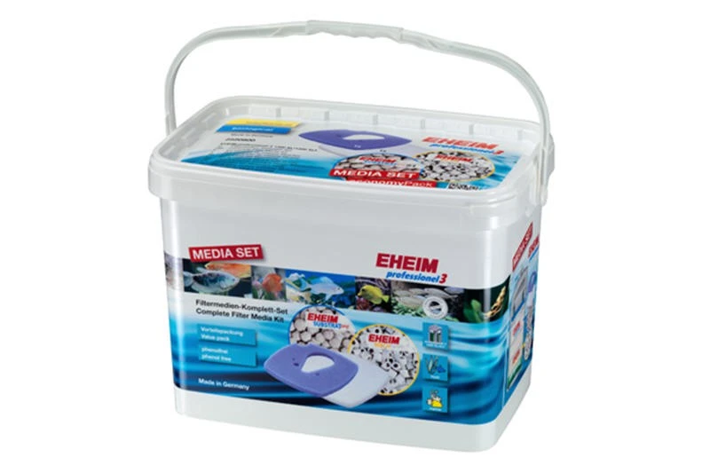 Das neue Eheim Media-Set ist ein Filtermedium-Komplett-Set für kristallklares, gesundes Wasser und lange Standzeiten. Eheim Filtermedien werden in den Eheim Labors entwickelt und aus hochwertigen Rohstoffen hergestellt. Sie werden permanent auf ihre Qualität geprüft und sind frei von Schadstoffen. Das Eheim Media-Set enthält die richtige Menge Filtermittel für den Eheim Außenfilter Professionel 3 2080 und 2180. Kann im Süß- und Meerwasser eingesetzt werden.